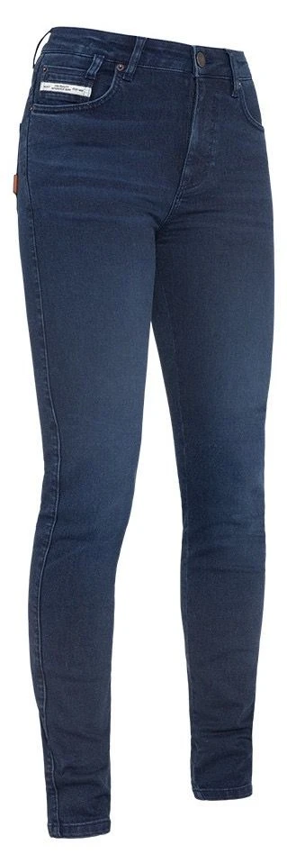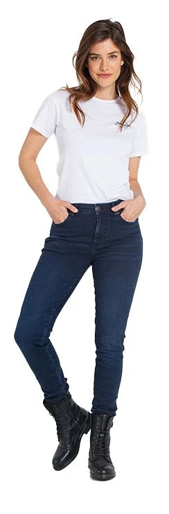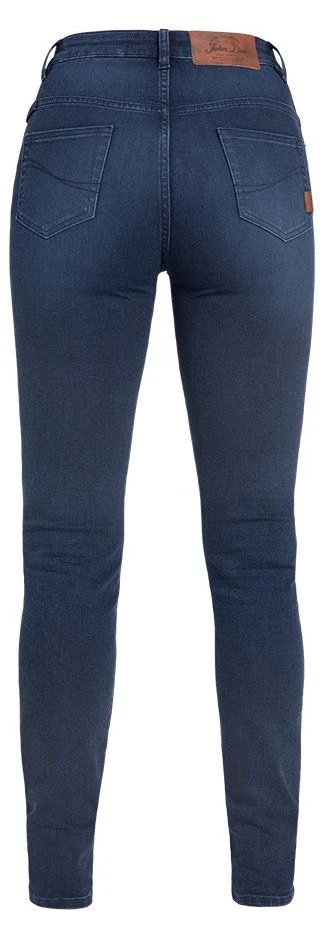 De John Doe Ruby dames motorjeans schittert in de collectie motorjeans voor vrouwen. Belangrijke aspecten die je als motorrijdster zoekt bij je nieuwe spijkerbroek voor op de motor worden door de Ruby jeans moeiteloos ingevuld. Om te beginnen de monolayer opbouw waarin stretch denim wordt verweven met de XTM-liner, bestaande uit Dupont Kevlar en Coolmax. Dit maakt de Ruby motorjeans door-en-door slijtvast en in hoge mate ventilerend. Op de knieën en heupen zijn John Doe CE level 1 protectoren aangebracht, waarbij die op de knieën in hoogte te verstellen zijn.