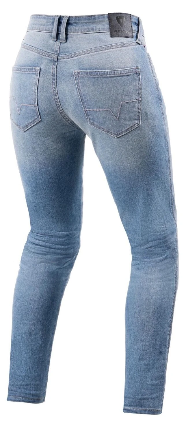 De REV’IT! Shelby 2 dames SK motorjeans heeft een fris voorkomen dankzij de lichte wassing van de Cordura denim waaruit deze dames motorjeans is opgebouwd. Deze enkele laag zorgt voor optimaal draagcomfort en uitstekend ventilerend vermogen voor de zomerdagen. Hij draagt slim fit waardoor die strak op je onderlijf aansluit en waarbij natuurlijk rekening is gehouden met een comfortabele zitpositie. Standaard beschikt de Shelby 2 jeans over flexibele knieprotectoren. Optionele RV33 SeeSmart heup protectoren zijn optioneel verkrijgbaar. Draag hem met een setje luchtige motorsneakers en je bent klaar om de zon tegemoet te rijden.